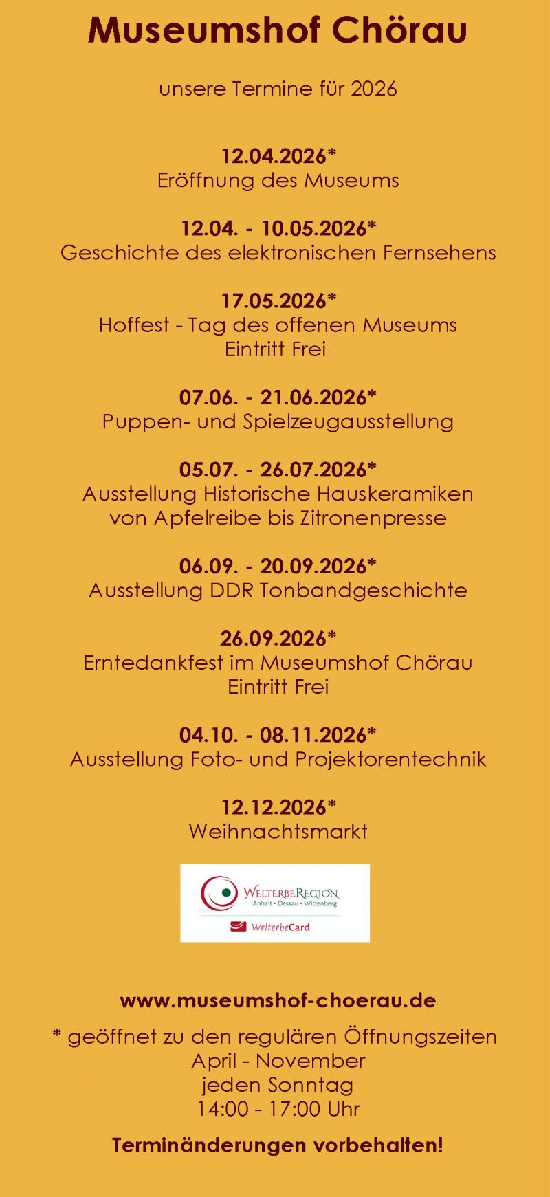 Wir haben Winterpause. Das Museum ist ab 05. April 2026 wieder geöffnet.